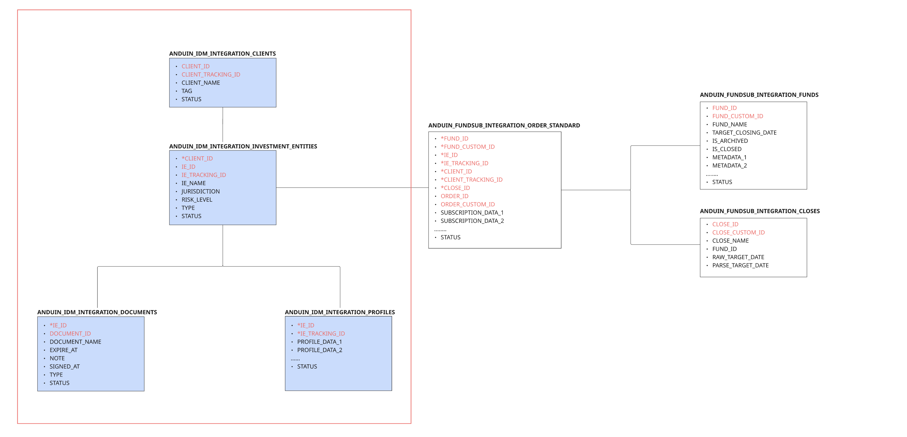 - Anduin Table Usage: This integration will create and populate data tables in the customer’s Snowflake environment. Modifying these tables directly is not recommended, as it may break compatibility with automated syncing.