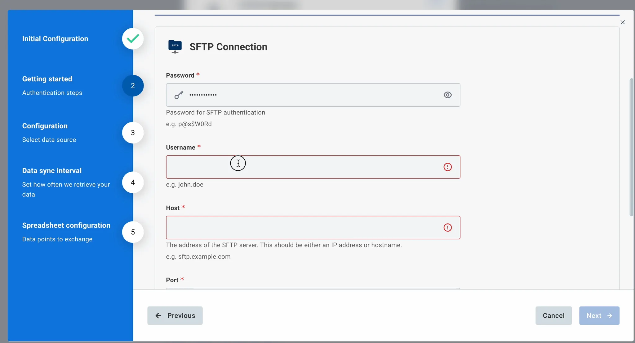 - SFTP Credentials: Customers must provide valid SFTP credentials for use during setup.