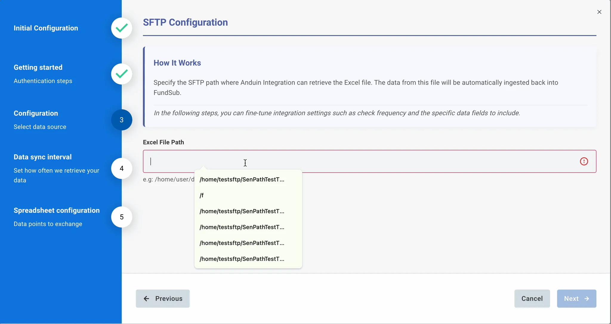 - Specify the data sync frequency. The automation will run and read from customer’s SFTP server according to the specified time interval.