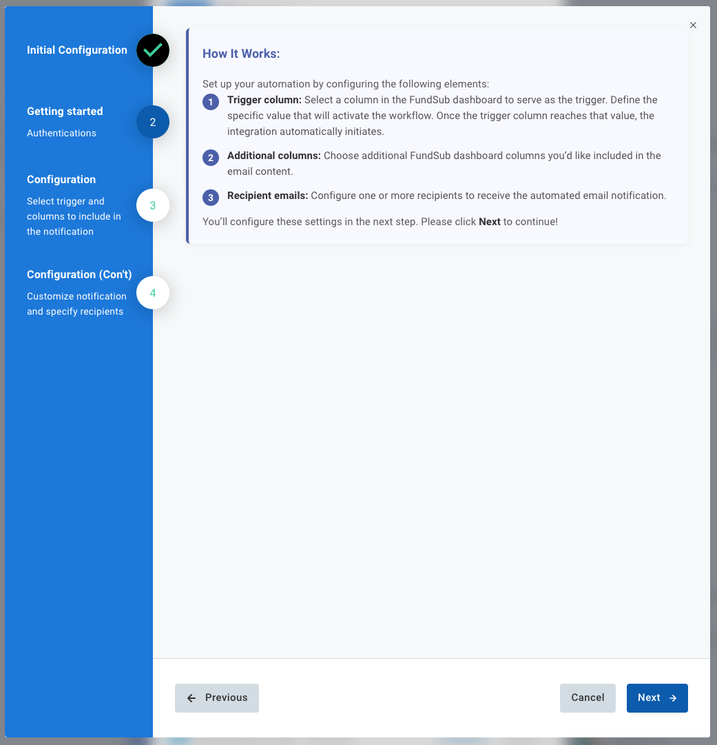- Additional columns: Select any extra FundSub dashboard columns you want to include in the email content.